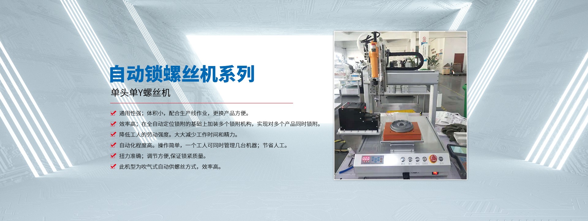 蘇州拓航機(jī)械設(shè)備有限公司成立于2016年,是一家集研發(fā)、制造、銷(xiāo)售及技術(shù)服務(wù)于一體的自動(dòng)化設(shè)備生產(chǎn)廠家,主營(yíng)產(chǎn)品有自動(dòng)螺絲機(jī)、自動(dòng)焊錫機(jī)、自動(dòng)點(diǎn)膠機(jī)、自動(dòng)灌膠機(jī) 脈沖熱壓機(jī),及各類型的非標(biāo)自動(dòng)化設(shè)備。